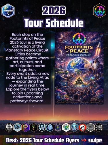 Our tour is a global movement in motion—hitting major cities, iconic events, and cultural hotspots with immersive activations that bring people together. Every stop builds momentum, expanding our reach and impact as we leave footprints of peace across the world.