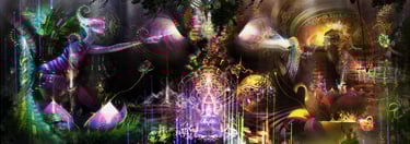 "Sacred Symbiosis is a visionary exploration of collective awakening and the activation of dormant human potential through communion with hyperdimensional sentience."