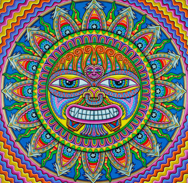 A visionary self-portrait exploring humanity’s connection to both the Sun and the Earth.