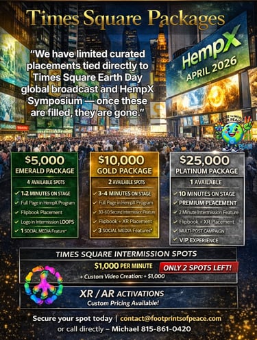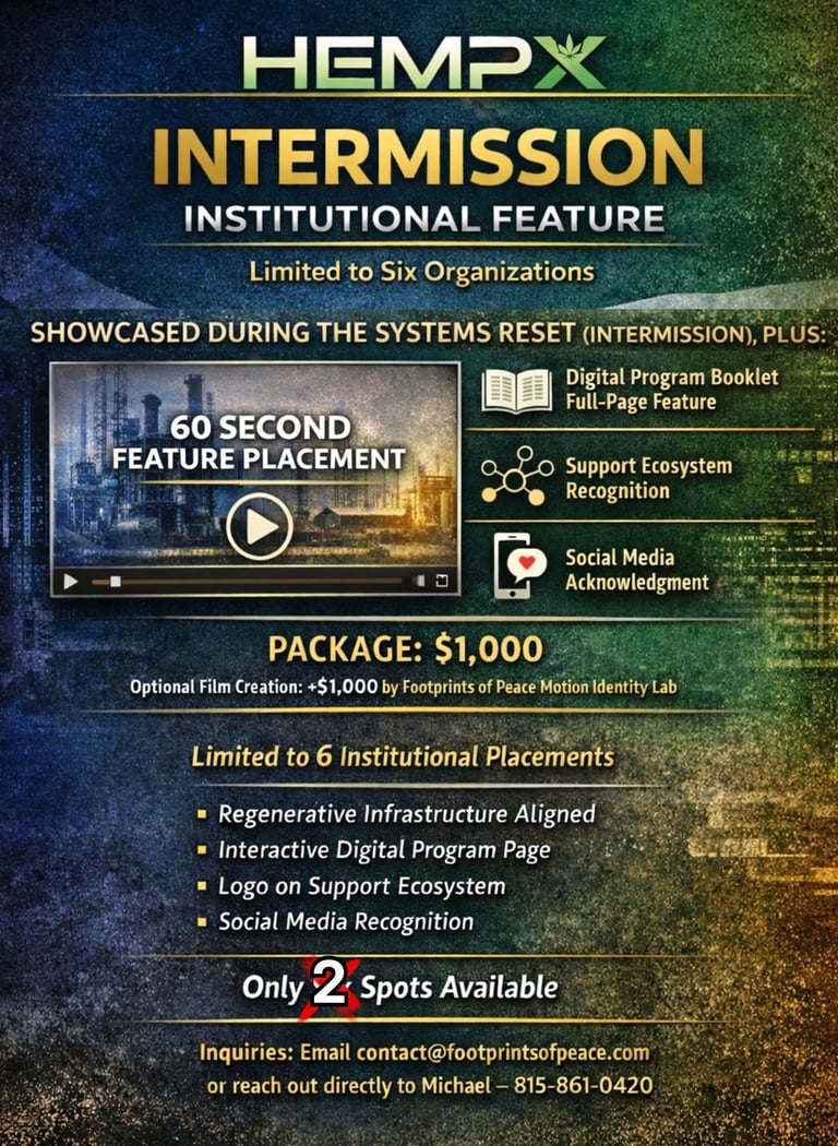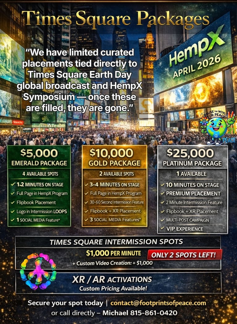 Show your support for peace by becoming a Supporting Peace Partner for $100, with your name or logo proudly listed on the 'Partners of Peace' page of the HempX 2026 digital flipbook. Join us in making a meaningful impact for HempX 2026.